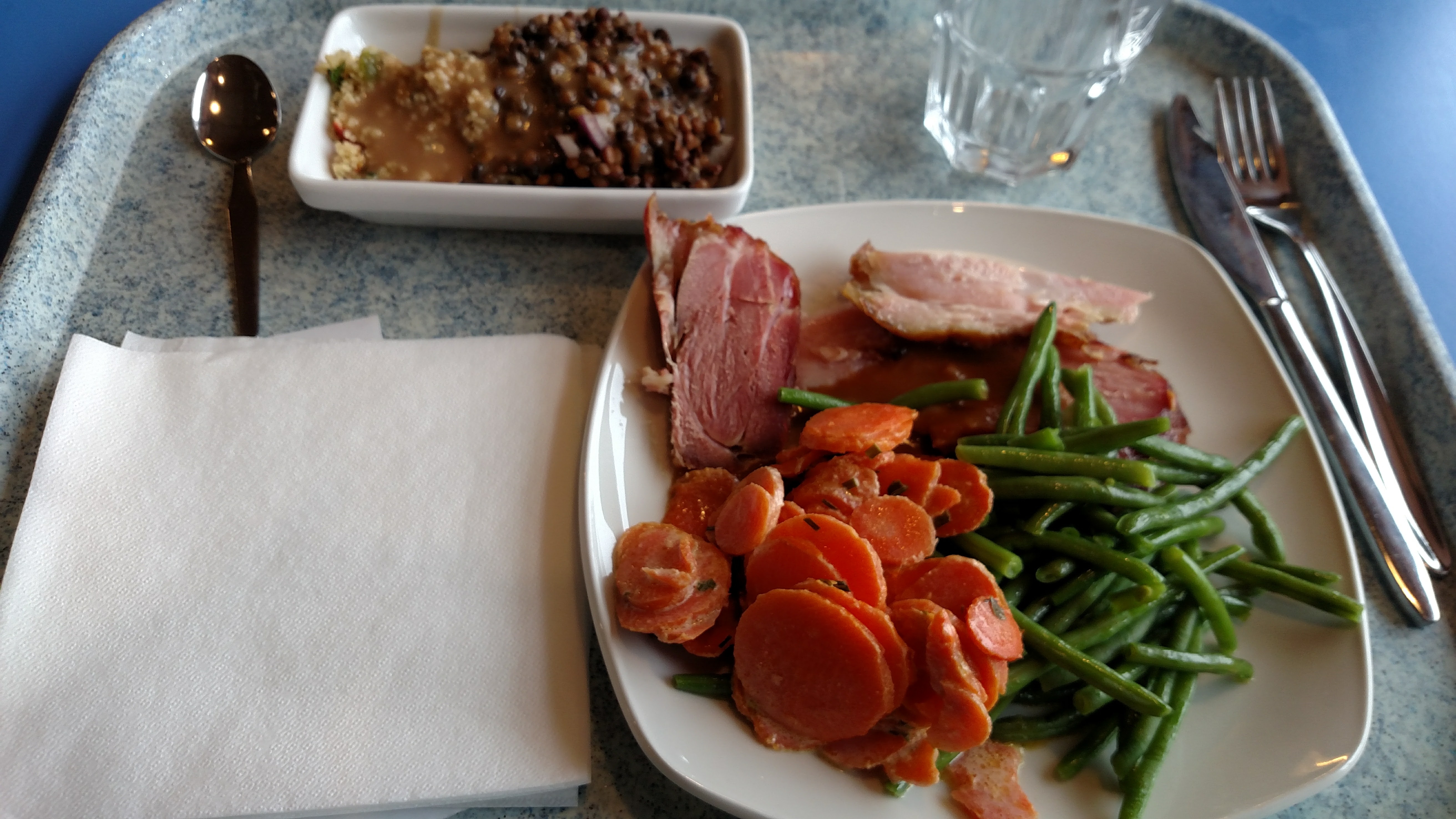 Repas pris à la cafétéria, j'ambon braisé frites coca et bavette légumes bière avec une part de tarte 37€!!! En fait les plats sont bons marché 11€ la bavette et 9.50€ le jambon donc ceux sont les petits à côté qui font grimper l'ardoise attention donc aux étiquettes...